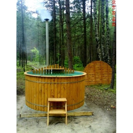 Zanurz i zrelaksuj się w balii o średnicy 1,9m z wkładem polipropylenowym oraz piecem opalanym drewnem.