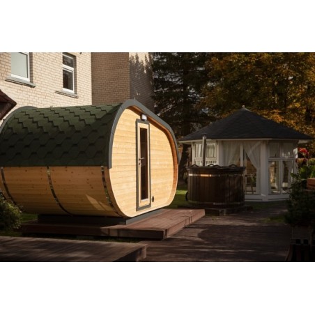 Domek kempingowy Bergen 2,4x4,3m to elegancka i funkcjonalna konstrukcja stworzona z myślą o wygodnym wypoczynku zarówno na działce, jak i poza miastem.