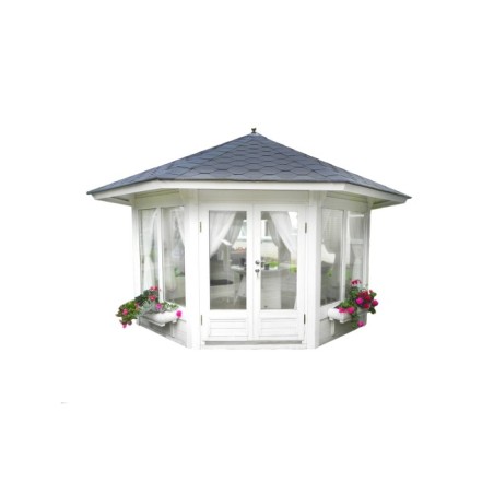 Klasyczny design z nutą elegancji — proste linie, dopracowane detale i uniwersalna forma umożliwiają dopasowanie pawilonu do różnych stylów architektonicznych i ogrodowych.